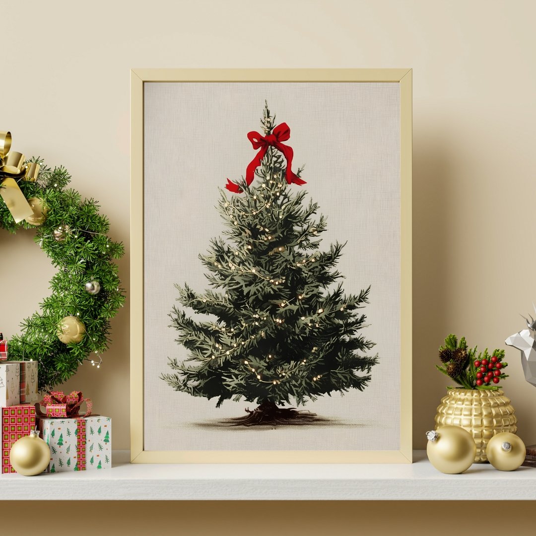 Classic Vintage Christmas Tree Print | Festive Wall Art | Instant Digital Download